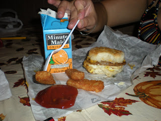 I also ordered French Toast sticks. These are like freshly made doughnuts. They are fried and topped with powdered sugar – need I say more? So good, but so bad 🙂 I ate 2 of them, 2 of the chicken strips and the curly fries you can see in the background. I really shouldn’t have ordered or ate this crap, but I rarely eat fast food and every now and then there is nothing else open.