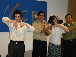 Here is a picture of the guys I walk with during lunch. From the left: Matt, Miguel, Me and Terence. Matt is moving to Boston next week and we are all super bummed so we wanted to capture a picture of our Walking Club before he left. The guys are trying to throw up WC for walking club with their hands, I know we’re lame. I did one of my signature Spice Girls moves – the Peace Sign. Woo-woo. Good luck Matt! Walking club won’t be as cool without you 🙂