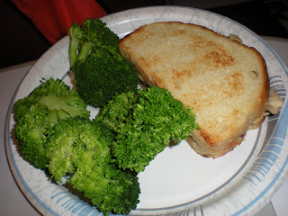 Lunch was a Lean Cuisine panini with broccoli. I bought a Cost Co bag of broccoli, so I basically have to eat it at every meal for the next week. Stay tuned for broccoli cereal for breakfast.